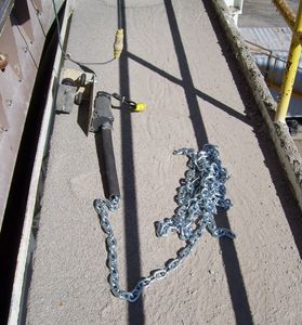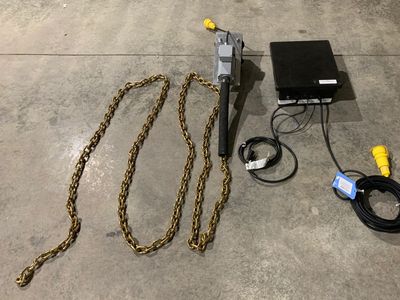 Motor assembly complete with guide rollers set up for a 2" guide pole. Chain cut to screen length (stock is 20')